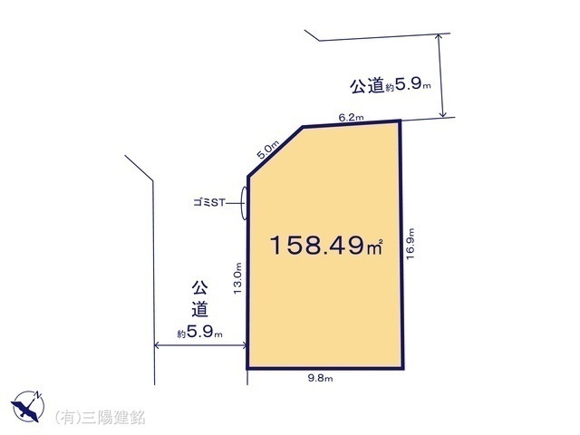 | 接道状況 | 二方(角地) 南西:幅員5.9m公道 北西:幅員5.9m公道 |