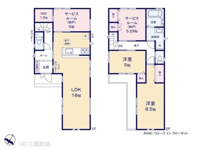 - 間取り表示のSはサービスルーム(納戸)の略称です。WICはウォークインクローゼット、DENは書斎の略称です。