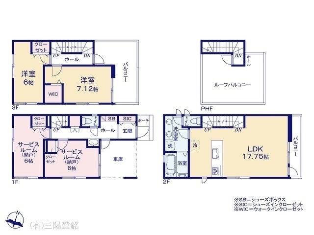 - 間取り表示のSはサービスルーム(納戸)の略称です。WICはウォークインクローゼット、DENは書斎の略称です。