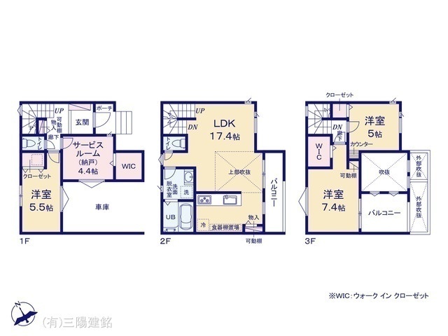 - 間取り表示のSはサービスルーム(納戸)の略称です。WICはウォークインクローゼット、DENは書斎の略称です。