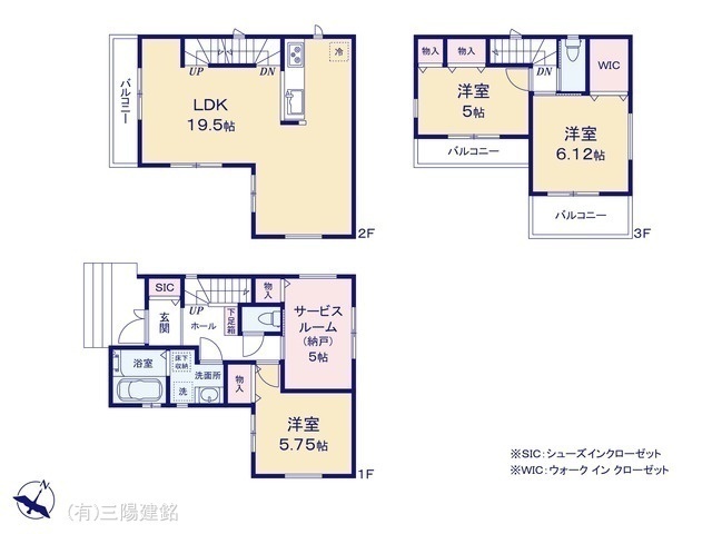 - 間取り表示のSはサービスルーム(納戸)の略称です。WICはウォークインクローゼット、DENは書斎の略称です。